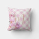 Créez votre oreiller de lancer personnalisé pour compléter l'esthétique de votre maison sans effort! le en vichy blanc et rose classique - avec fleurs de cerisiers et votre propre monogramme! (personnalisable dans n'importe quelle couleur) Conçu exclusivement pour vous, chaque coussin est fait sur mesure selon vos spécifications. Choisissez parmi notre gamme d'options incluant notre design zippé économique, polyester peluché, ou coton doux pour l'élégance intérieure. Optez pour le tissu extérieur pour un charme durable sur votre patio ou véranda.