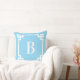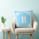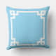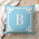 Coussin Monogramme de bordure de clé grecque bleu clair et