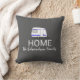 Coussin gris-foncé moderne d'aventure de vacances de voyage. Illustration d'un coussin de nom de monogramme de famille de MAISON de caravane.