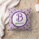 Ce coussin à monogramme est un excellent moyen de créer un souvenir mémorable pour quelqu'un de spécial. Un motif d'étoile dorée apparaît sur un fond violet. La lettre B de couleur violet clair est mise en valeur dans un cercle central ainsi que le nom de famille. Personnalisez facilement les couleurs et le nom de famille pour répondre à vos envies. La lettre "B" ne peut pas être personnalisée sur ce coussin. Si vous cherchez une lettre différente, veuillez visiter notre magasin.