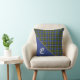 Coussin élégant de plaid fait dans le motif coloré traditionnel de plaid de tartan de famille d'Estes. En bas à gauche l'avant est fait dans le bleu avec un bord jaune d'accent et a un un monogramme gris-clair de lettre prêt à personnaliser avec votre initiale de famille. Carreau beau d'accent avec un monogramme et une torsion moderne.