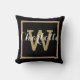 Coussin Monogramme noir en or moderne Chic Script