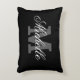 Coussin monogramme noir et blanc personnalisé. Modèle de typographie de script élégant avec lettre initiale de nom vintage. Elégant coussin de décoration maison pour canapé, canapé ou lit. Design tendance pour dortoir, chambre, espace de vie, etc. Personnalisez l'arrière - plan et la couleur de police.