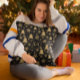 Décorez votre maison ce Noël avec notre oreiller à lancer inspiré de Noël. De beaux sapins de Noël dorés et des flocons de neige sur l'arrière - plan noir lui donnent un air festif. Vous pouvez customiser ce design avec vos monogrammes, initiales ou nom ou supprimer le monogramme en cliquant sur le bouton "Personnaliser". Cliquez sur "Customiser plus loin" pour modifier les polices de texte et les couleurs. Un cadeau de Noël parfait pour votre famille et vos amis et vous en voulez absolument un pour vous-même. Contactez-moi par courriel si vous avez besoin d'aide ou de produits correspondants à l'adresse shabnamahsanatzazzle@gmail.com