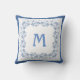 Coussin Monogramme nostalgique Frontière florale Indigo