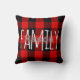 Coussin rustique de plaid de bûcheron parfait pour le décor de pays décoré d'un monogramme au centre avec le nom de famille dans le gris recouvert sur le lettrage rustique de style qui lit la "FAMILLE". Arrière - plan rustique et de très bon goût de motif de plaid de contrôles de buffle rouge et noir. Identique des deux côtés. Décor confortable de maison de guingan pour un cabine de rondin rustique. Cadeau gentil de pendaison de crémaillère.