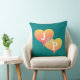 Coucher de soleil romantique de teintes doré jaune orange à rose sur le coeur double avec turquoise vert arrière - plan solide Mariage réversible Jeu d'oreiller. Personnalisez les coeurs avec les initiales monogrammées du couple. Le dos du coussin personnalise avec les prénoms de la mariée et de la mariée et la date du Mariage. Beau cadeau mariage pour les jeunes mariés ! Oeuvre originale Design par TamiraZDesigns.