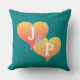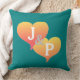Coussin Monogramme Sunset Coeur Turquoise Vert réversible