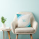 Coussin Monogramme Turquoise bleu rayé simple