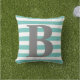 Turquoise White Stripes Monogramme Carré initial Le Coussin extérieur égayera votre mobilier de patio.