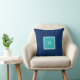 Monogramme turquoise coloré solide moderne de famille de bleu marine, initiale, coussin.