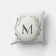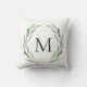 Coussin Monogramme vert de guirlande de branche d'olivier