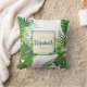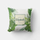 L'oreiller à jetons est orné de feuillage tropical vert et de petites fleurs blanches sur un arrière - plan blanc. Personnalisez-le en ajoutant votre nom et votre initiale au cadre central.