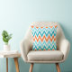 Coussin Motif bleu de zigzag d'Aqua orange moderne de