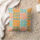 Motif de patchwork d'inspiration rétro avec des motifs plus petits comme le chevron, les rayures et les pois. Dans ce design vous pouvez aussi voir des couleurs comme l'orange, le bleu aqua, le jaune moutarde, le marron et le blanc.