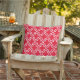 Le coussin élégant dispose d'un motif en quatrefoil marocain moderne décoré en blanc. Customisez l'arrière - plan rouge pour coordonner votre décoration extérieure.
