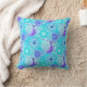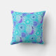 Coussin Motif de remous de fractale, turquoise, aqua, bleu