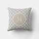 Coussin Motif gris de Quatrefoil, monogramme beige
