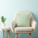 Cet oreiller moderne à jetons en coton est doté d'un motif hexagone géométrique en blanc et vert sauge.