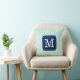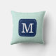 Coussin pois tendance et élégant bleu menthe avec monogramme personnalisable sur bannière bleu marine.
