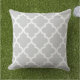 Le coussin d'accent extérieur carré élégant et chic dispose d'un motif de Quatrefoil marocain dans une couleur blanche avec une couleur arrière - plan platine clair gris. Customisez l'arrière - plan pour coordonner votre décoration extérieure.