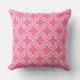 Le coussin élégant dispose d'un motif en quatrefoil marocain moderne décoré en blanc. Customisez l'arrière - plan rose vif pour vous coordonner avec votre décor extérieur.