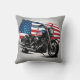 Une moto saisissante avec un drapeau américain se profile devant un décor de drapeau audacieux, célébrant liberté et aventure avec un flair patriotique.