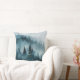 "cool tone palette, misty forest illustration, cozy accent pillow, enchanted blue theme",