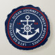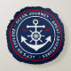 Ancre nautique ronde avec le coussin d'étiquette de la roue du bateau dans le bleu marine et le blanc pour tous les marins et chacun qui aiment le style nautique. Pour les salons nautiques, chambres à coucher nautiques, crèche nautique, kidsroom nautique, pièce nautique d'enfants en bas âge, partout où vous voudriez donner un regard nautique à votre maison.