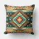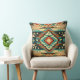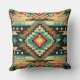 Amérindien du sud-ouest de Navajo Jetez l'oreiller avec un motif d'art tribal symétrique aux couleurs turquoise, orange et marron clair