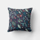 Coussin Navy Blue Rustic Floral Folk Art Pattern Pillow