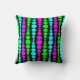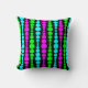 Cet oreiller de lancer a un design moderne du milieu du siècle de rectangles ronds rose néon, vert et bleu de taille croissante et décroissante en courant verticalement sur un champ de noir.
