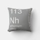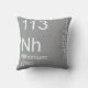 Cet élément coussin de l'élément Nihonium est tiré du tableau périodique des éléments. Nous vendons des coussins de chaque élément du tableau périodique dans une variété de couleurs. Ils sont le cadeau parfait pour la chimie organique, la chimie, la chimie analytique ou la biochimie dans votre vie. Chaque département d'ingénierie chimique devrait avoir une collection. Obtenez-en un pour votre diplôme en sciences aujourd'hui !