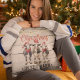 Profitez de cette jolie ferme "Noël dans la grange" jetez un oreiller avec une typographie rouge et marron, trois vaches holstein portant des chapeaux de Père Noël rouges, et des lampes à cordes. Arrière - plan en bois clair. Célébrez un Noël de campagne et douillet avec un style barndo!