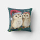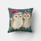 Coussin Noël Deux Chouettes Aquarelle Santa Hat