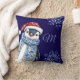 Coussin Noël du manchot de monogramme bleu