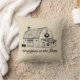 Noël à la ferme - vintage style ferme jetez l'oreiller avec la grange et les animaux de ferme.