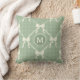 Oreiller jeté Nœuds Coquette Gingham Monogramme Crème Vert Sauge pour un look moderne et épuré. Style campagnard élégant et chic dans ce motif unique de nœuds couleur crème et de lignes à motifs en diamant à l'aquarelle. Changez le monogramme pour l'initiale de votre choix.