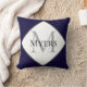 Ce monogramme bleu marine minimaliste va bien dans n'importe quelle chambre de la maison, surtout avec un thème nautique. L'initiale est au centre en gris clair et le nom de famille en lettres noires simples. Suivez simplement l'invite de modèle Zazzle et voyez à quoi ressemble votre coussin personnalisé !
