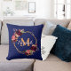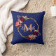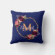 Coussin Nom de monogramme géométrique or florifère bleu ma