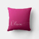Oreillers de décoration personnalisés avec nom de script de calligraphie élégant blanc scintillant rose présente un design moderne et tendance simple et élégant avec votre nom personnalisé en typographie de calligraphie manuscrite élégante sur un fond métallique rose scintillant. Conçu par ©Evco Studio www.zazzle.com/store/evcostudio