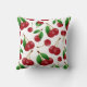 Un oreiller à jetons monogrammed motif de cerises rouges comporte un motif aléatoire de cerises jumelées et simples avec des feuilles et des tiges toujours attachées, comme si fraîchement cueillies à partir de l'arbre à cerisier - son nom et son monogramme sont personnalisables - par katz_d_zynes