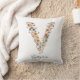 Coussin Nom personnalisé & Monogramme floral 'V'