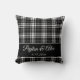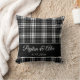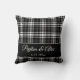 Housse de coussin élégante avec un motif carreauté de plaid/tartan buffle noir et blanc, personnalisée avec les noms d'un couple et la date de mariage ou tout texte de votre choix. Belle décoration de ferme.