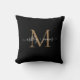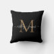Coussin Noms de mariage élégants monogramme noir or