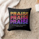 Stylish Black PRAISE Musical Staves Christian Throw Oreiller conçu avec les mots PRAISE PRAISE PRAISE PRAISE dans une typographie mauve audacieuse qui inclut également des staves musicales colorées et des notes dans les lettres, ce qui rend un design étonnant. En dessous, il y a un TEXTE PERSONNALISABLE qui dit LAISSER TOUT CE QUI A ÉCLATEZ L'ÉTERNEL, qui est basé sur le verset de la Bible chrétienne du Psaume 150. Cet Oreiller Christian Loué serait idéal pour les musiciens et les adorateurs. Vous pouvez ajouter votre propre texte ou nom de votre église ou de votre groupe, etc. pour remplacer le verset de la Bible. Choisissez parmi une large sélection de modèles chrétiens inspirants et basés sur la foi sur les vêtements, la décoration de maison, les cartes et les cadeaux, conçus par Berean Designs.