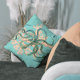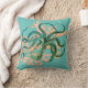 Aqua arrière - plan, branche corail aquarelle et une illustration de pieuvre vintage teintée verte donnent à cet oreiller un look moderne.