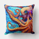 Coussin Octopus Whimsical Cubisme d'onde de l'océan bleu