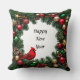 Coussin Oiseau cardinal rouge au décor festif