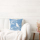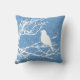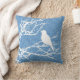 Lancer l'oreiller dans une silhouette stylisée d'un petit oiseau perché sur une branche d'arbre en dentelle, en blanc, contre un bleu ciel et un arrière - plan de la marine dans un motif tourbillon japonais vintage